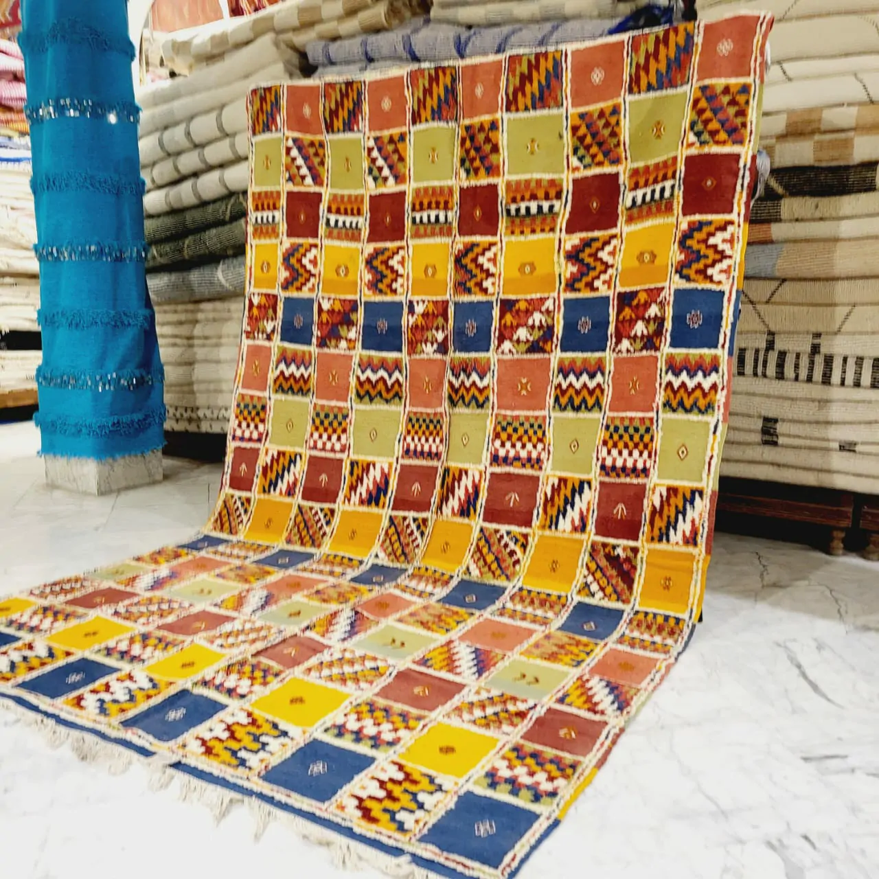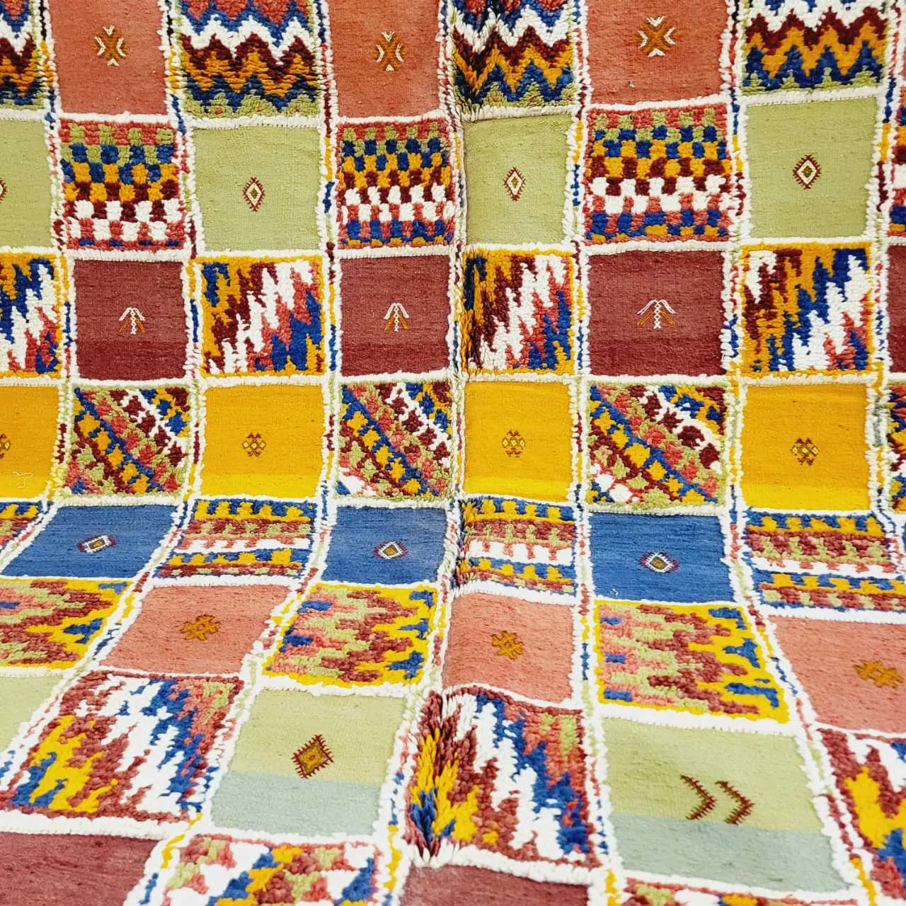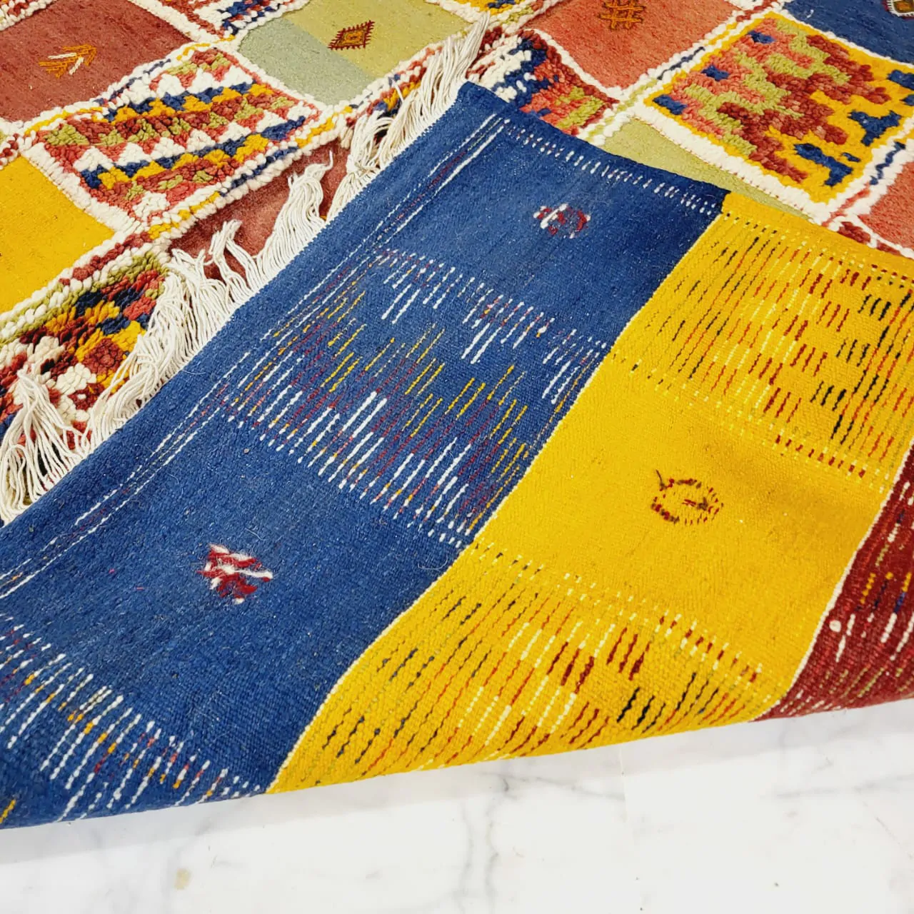 Introducing our Taznakht Rug – a cultural masterpiece deeply woven into the identity of Taznakhte. More than an artisanal product, it reflects a centuries-old tradition, mirroring a lifestyle in vibrant colors and captivating images.