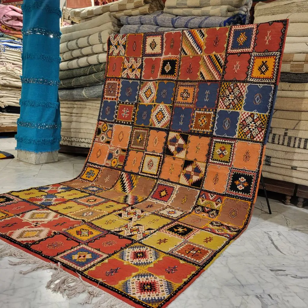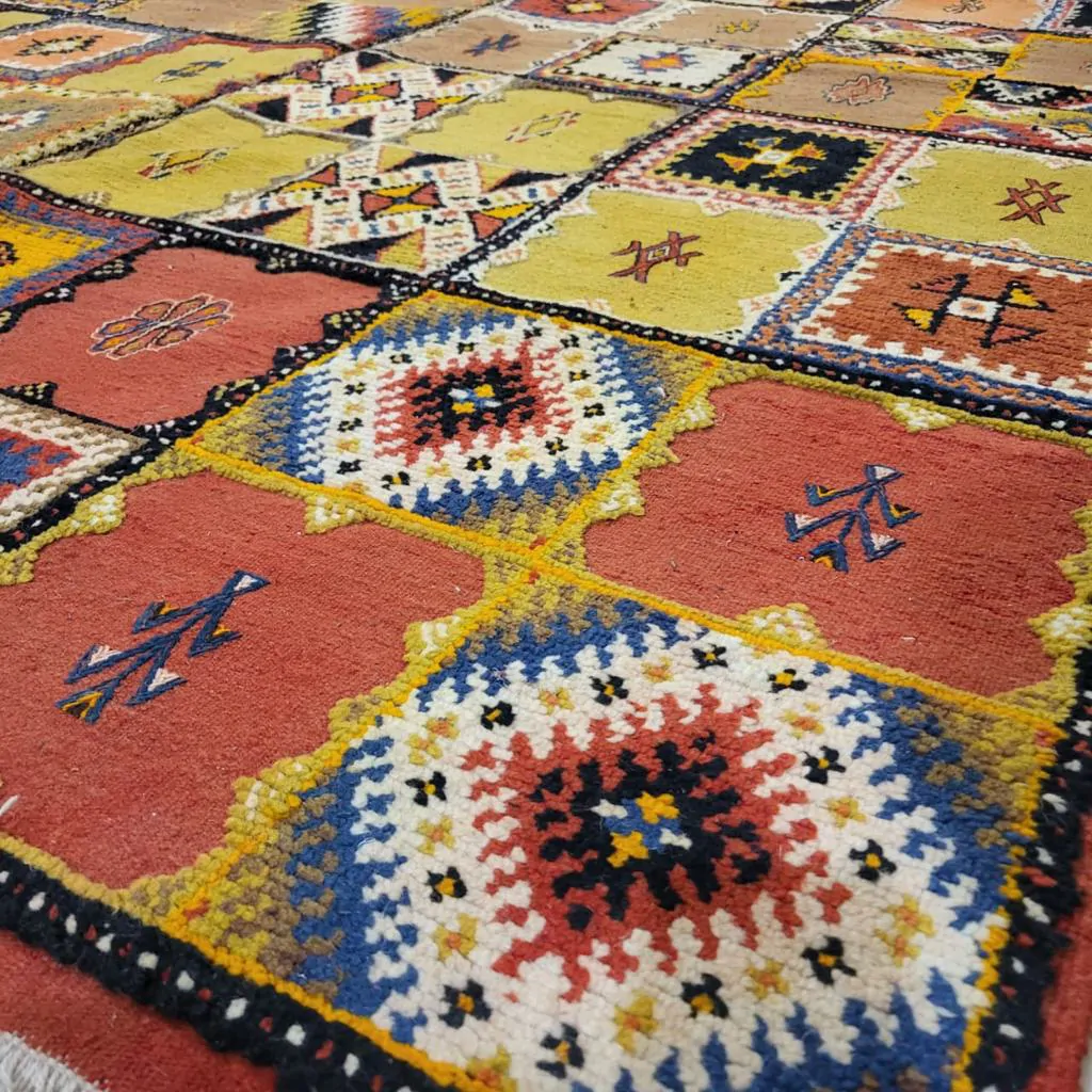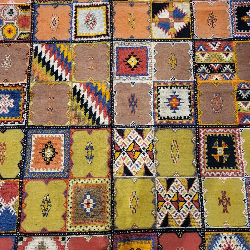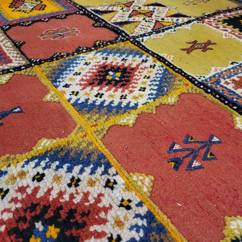 Introducing our Taznakht Rug – a cultural masterpiece deeply woven into the identity of Taznakhte. More than an artisanal product, it reflects a centuries-old tradition, mirroring a lifestyle in vibrant colors and captivating images.