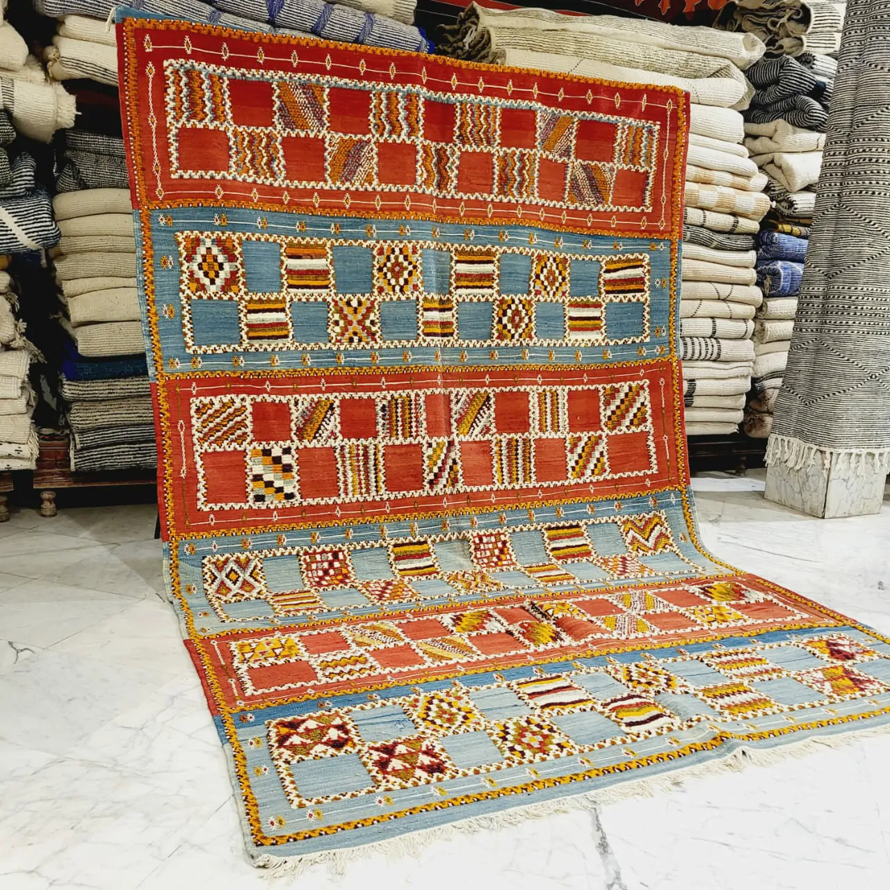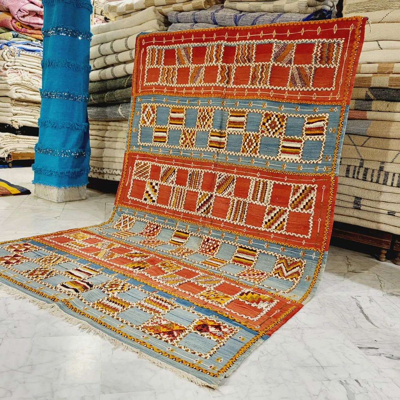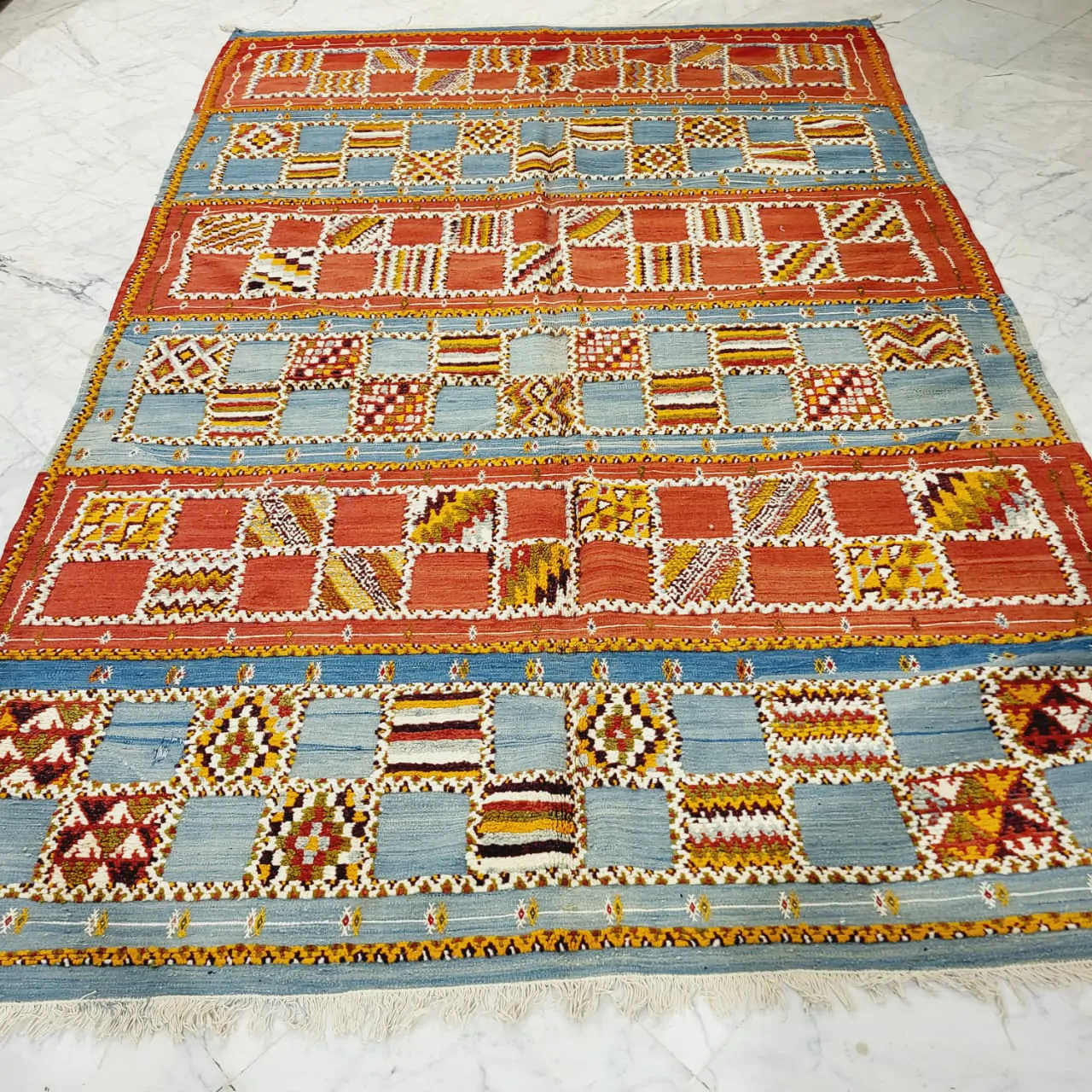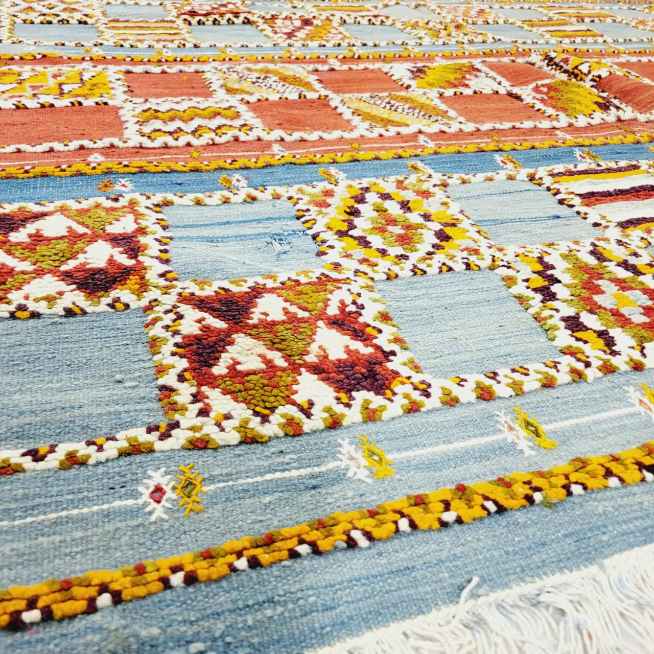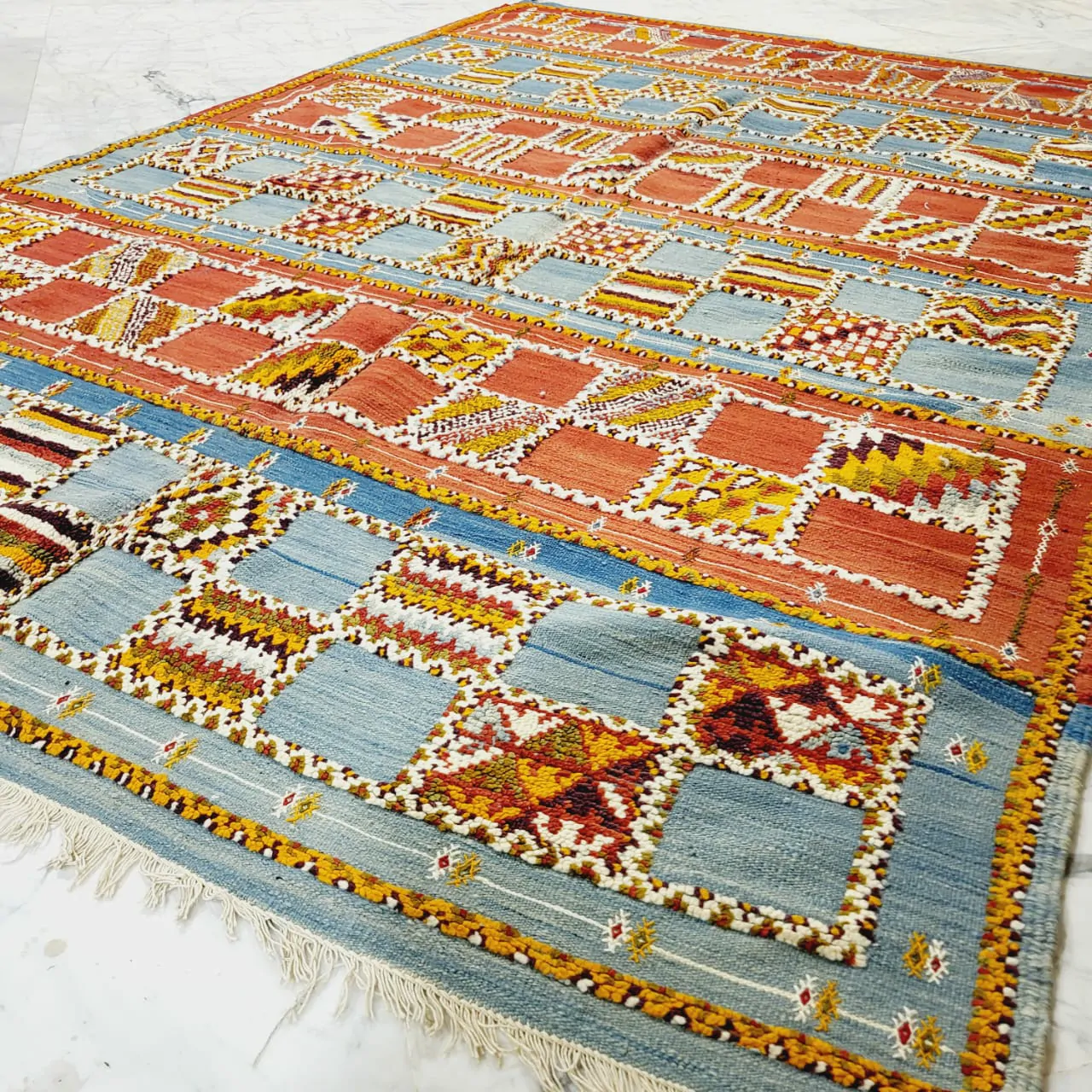 Introducing our Taznakht Rug – a cultural masterpiece deeply woven into the identity of Taznakhte. More than an artisanal product, it reflects a centuries-old tradition, mirroring a lifestyle in vibrant colors and captivating images.
