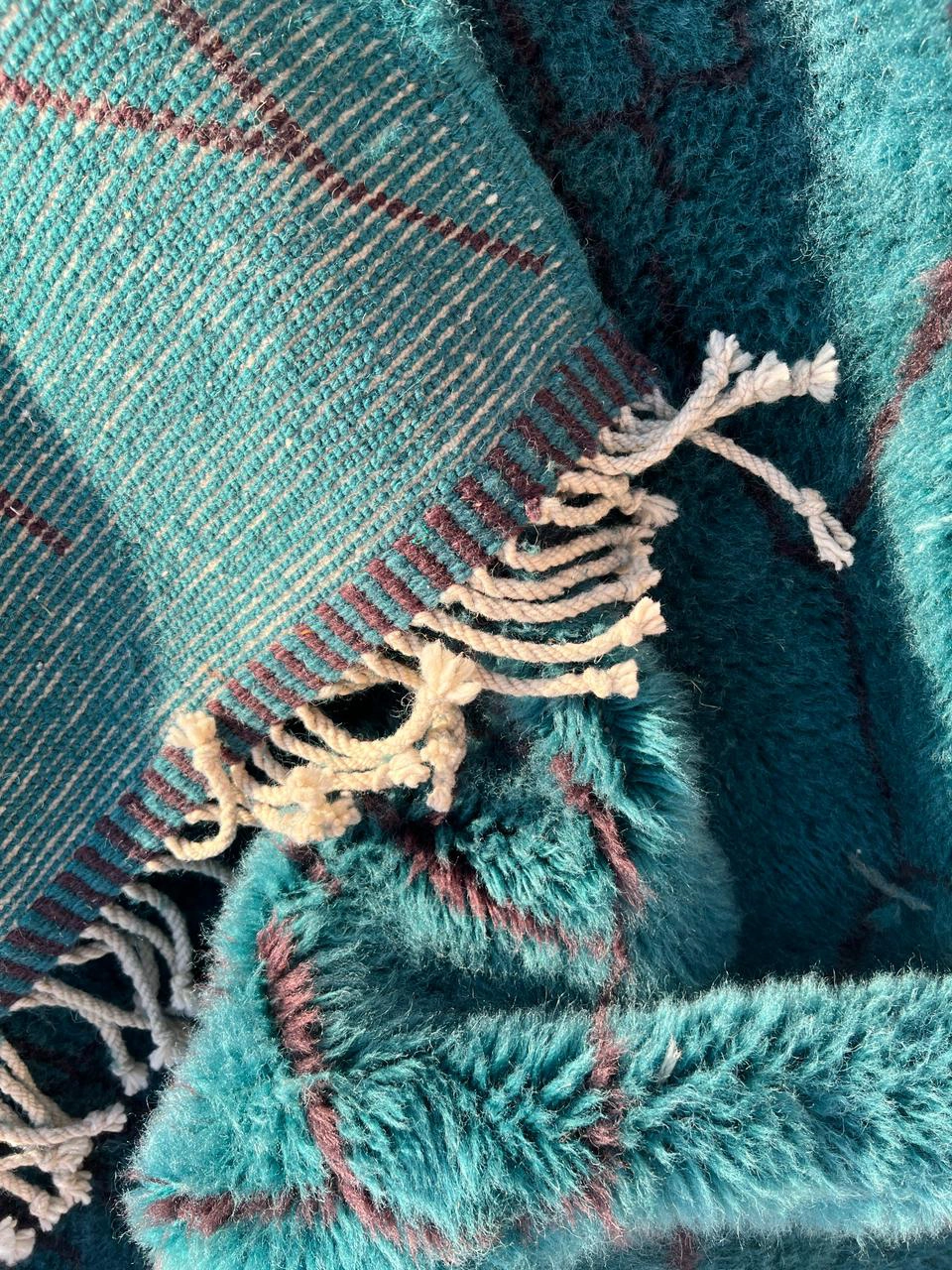 Teal Moroccan Rug – Hand-Knotted Abstract Berber Wool Area Rug DIHIA