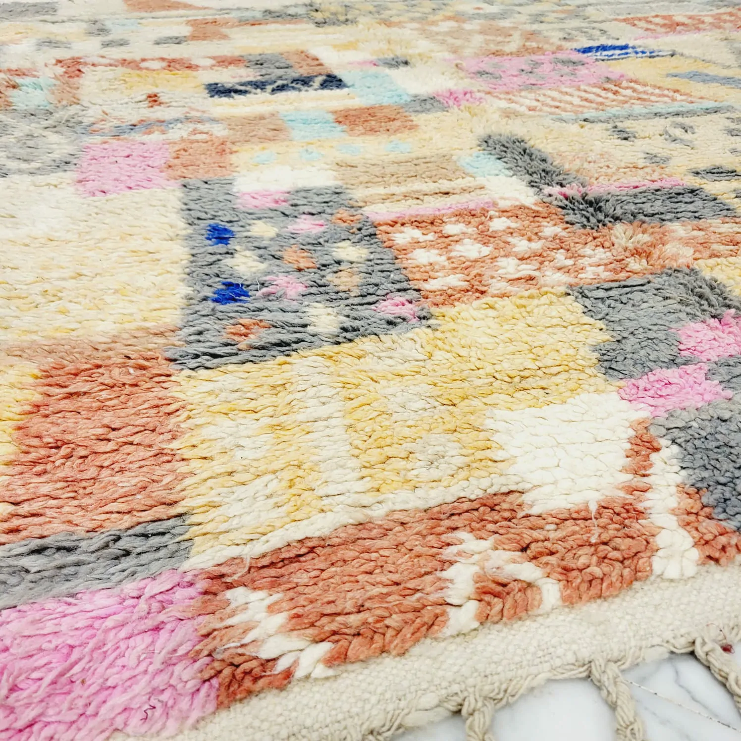 Whether used as a statement piece in a living room or as a cozy accent rug in a bedroom, the Moroccan Berber Boujaad Vintage Rug is a timeless and versatile piece that will add a touch of cultural heritage and charm to any home décor.