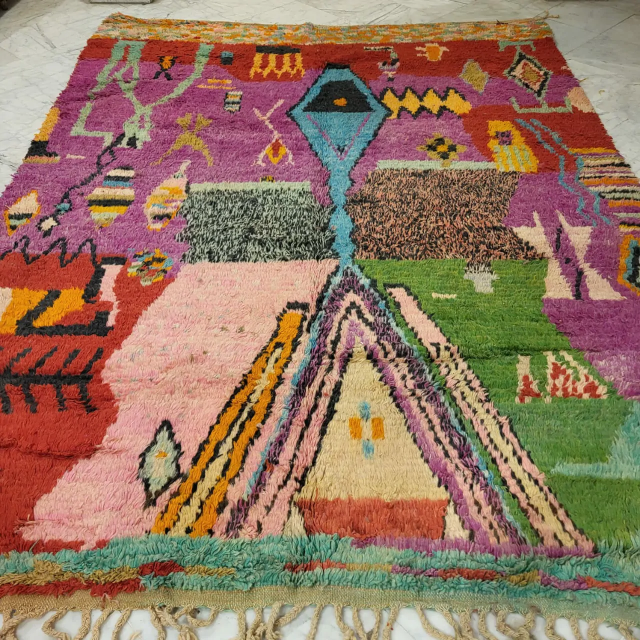 The Moroccan Berber Boujaad Vintage Rug is a unique and authentic handwoven rug that originates from the Boujaad region of Morocco. Made by skilled Berber artisans, each rug is crafted using traditional techniques passed down from generation to generation.
