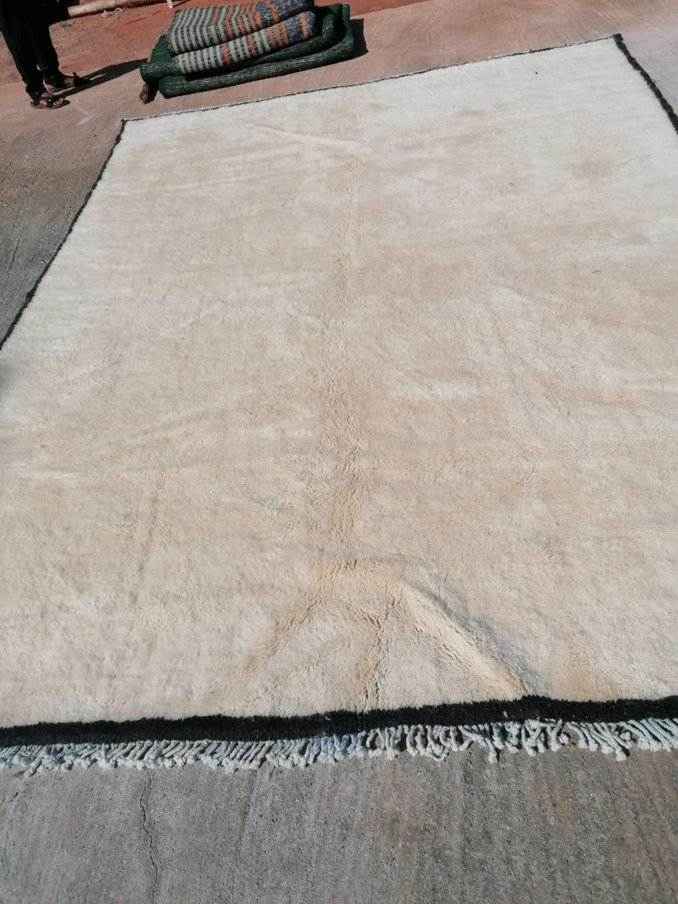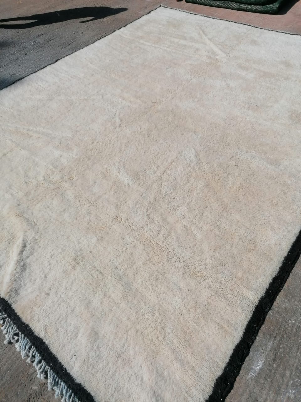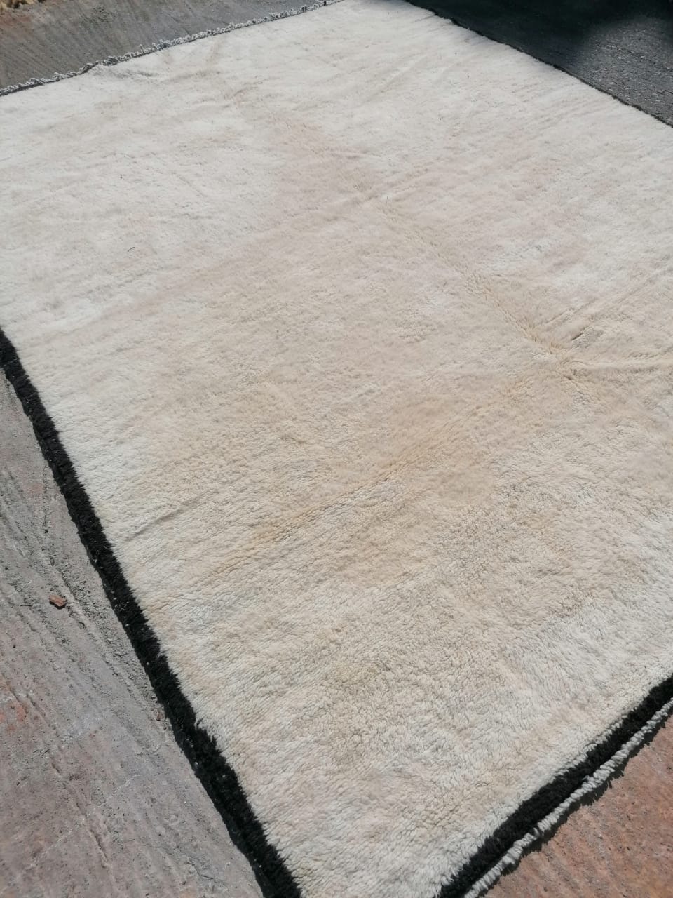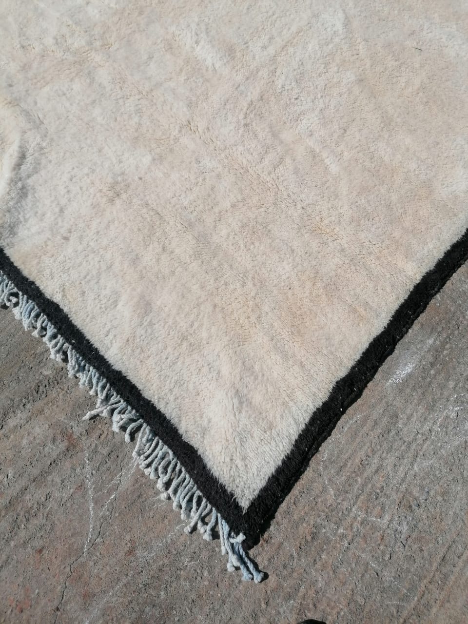 White Moroccan Wool Rug With Black Border 9’x12′